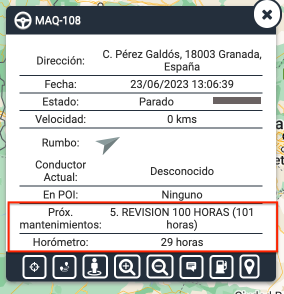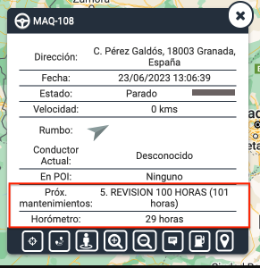 👍 Balloon de Mapa maquinaria - incluye* ahora el nivel de combustible (sonda), horas motor en tiempo real, y próximo mantenimiento (en horas/días).