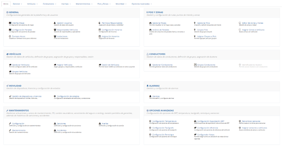 Tendrás visibilidad s/ el estatuto de los conductores, también acceso a varios informes de tacógrafo asi como a la funcionalidad de descarga remota de tacógrafo (DRT).