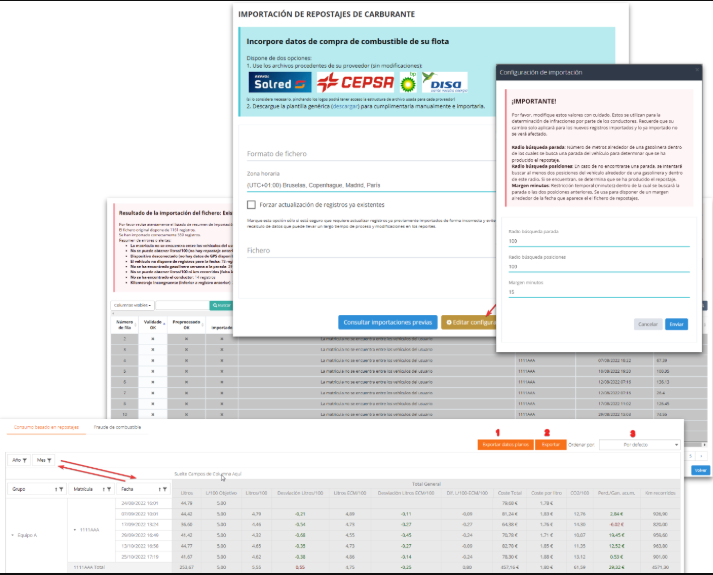 - Importación de los repostajes (proveedor preestablecido o plantilla por defecto)