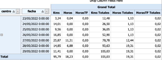 Ahora se muestran en el informe dos líneas asociadas a la primera y última posición en el rango seleccionado, y se dibujan como "Inicio Viaje" y "Fin Viaje", indicando los kms correspondientes al finalizar la ruta.