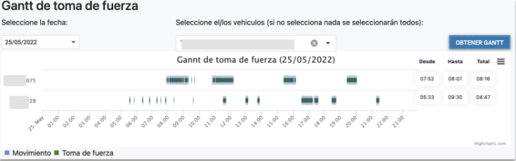 Nuevos informes de maquinaria con horas de uso, distancia y toma de fuerza (si la tiene sensorizada).